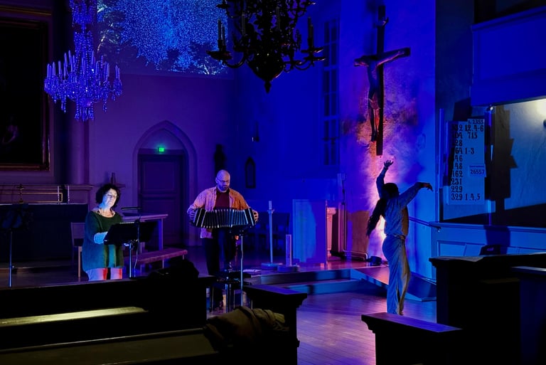 Talvinen Matka -teoskokonaisuus tutkailee ajan eri käsitteitä musiikin, tanssin ja runouden äärellä. Kokonaisuus kutsuu yleisön ajallisuuden ja ajattomuuden äärelle, aistimaan ja ihastelemaan meditatiivisuuden kaarroksia, sekä elämän monimuotoisuutta.
